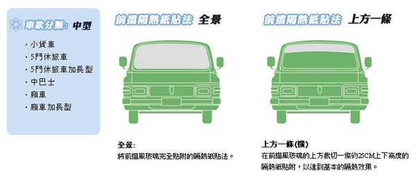 隔熱紙小知識:何謂「全景」或「上方一條」?