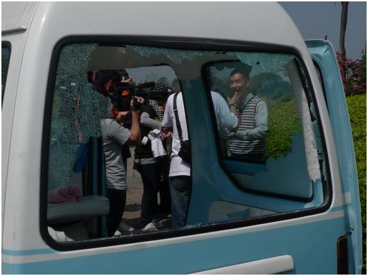 此次拍攝工作,為了避免Blue砸破玻璃時被玻璃碎片刺傷,擋風玻璃網的玻璃師傅特地專業指導玻璃的特性及砸玻璃技巧,讓Blue第一次試拍就成功。而擋風玻璃網專業的玻璃師傅,快速清理玻璃碎片、安裝新的玻璃,並貼上為了車子造型的小天使及雲朵貼紙,節省了劇組等待的時間,以迅速完成拍攝作業。